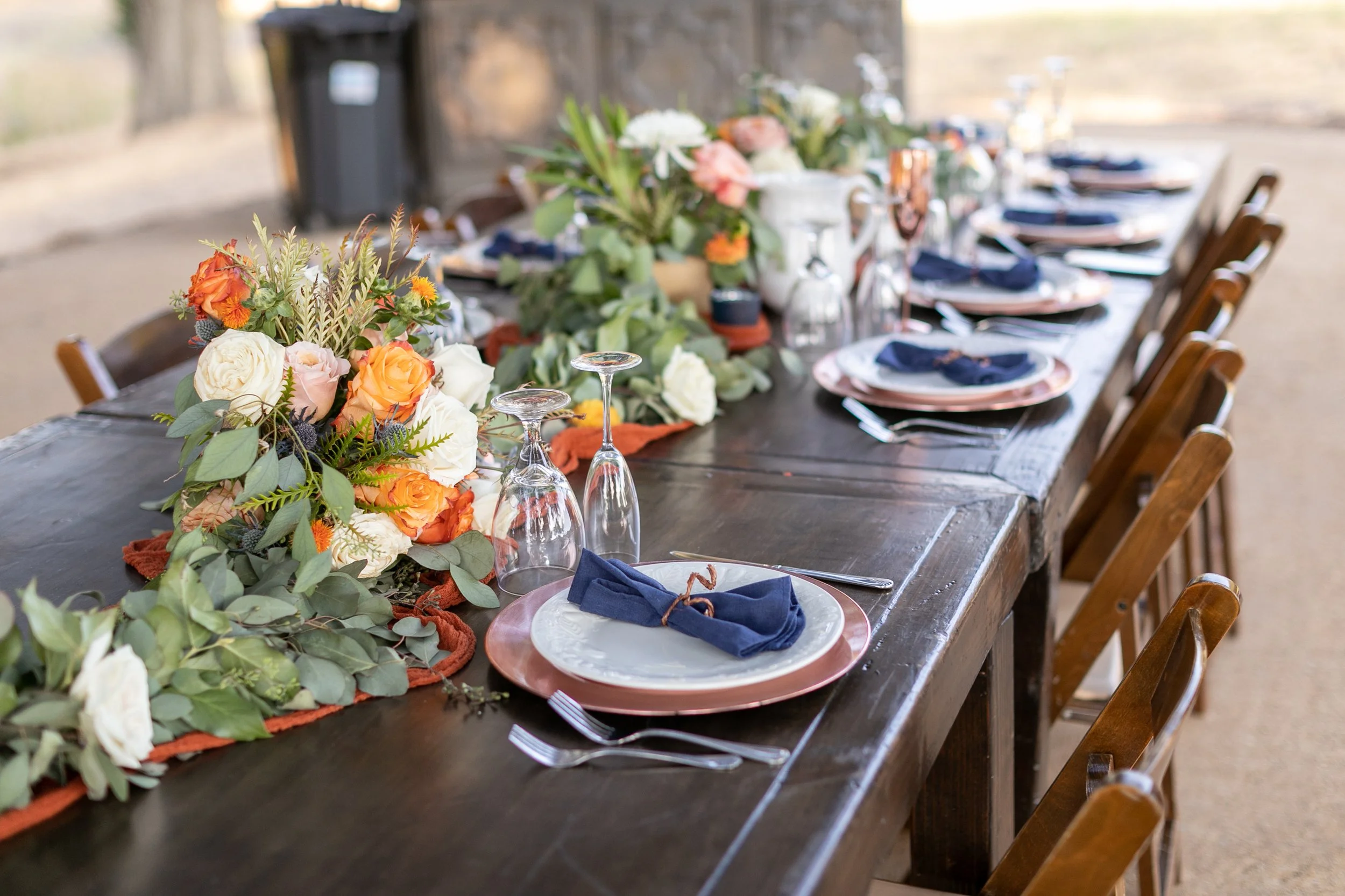 The story of Maddie and Josh began at Penn State. As a nod to their alma mater, navy and white was the starting point of their mood board. Their coastal venue was known for its ancient oaks nestled in the heart of wine country…and the mood board grew from there…
