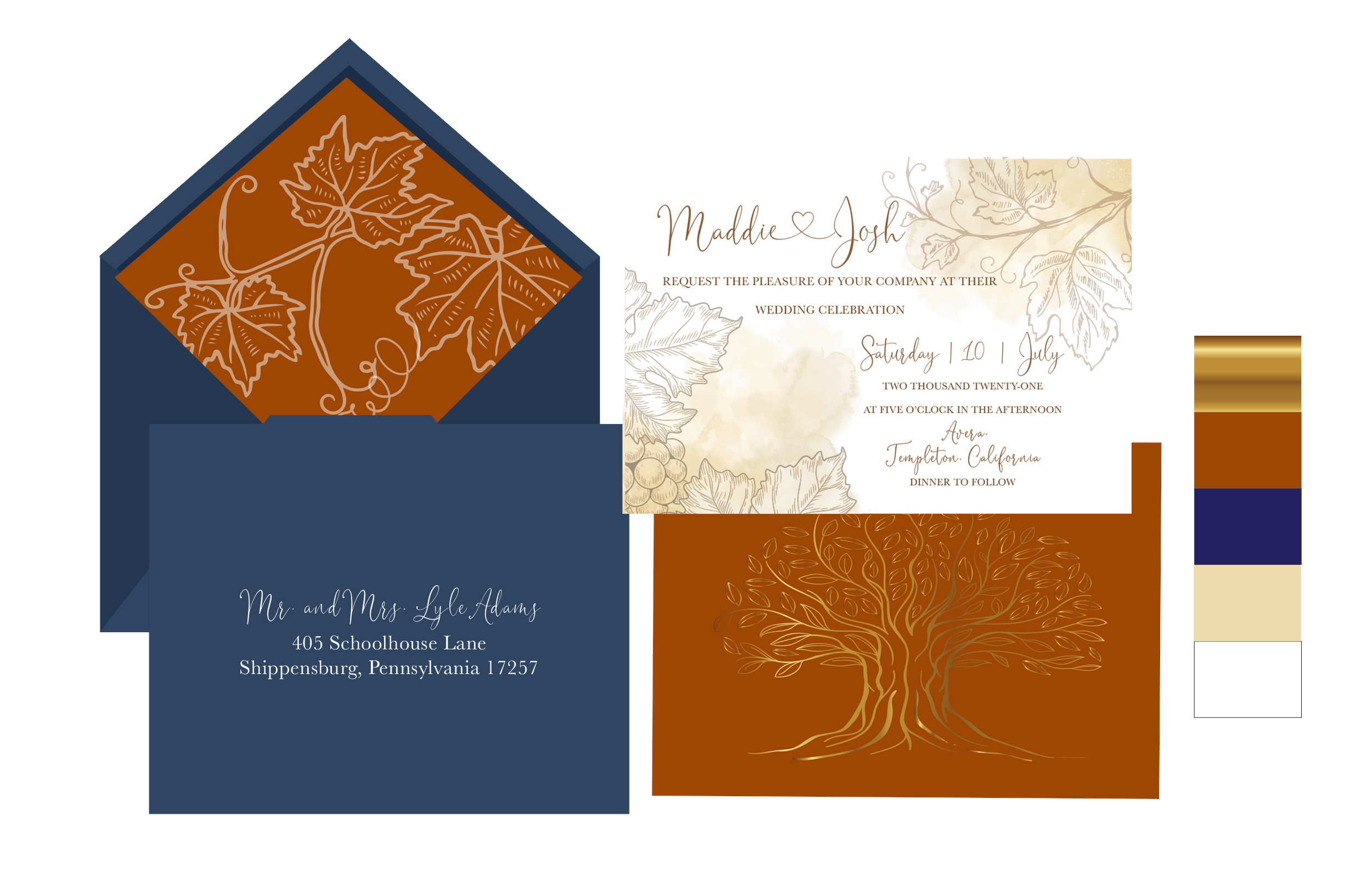 Maddie and Josh were one of those “lucky” couples whose entire wedding plans got hijacked by the pandemic. What started as a big wedding in the mountains of Pennsylvania - finally came to fruition as a small, intimate wedding in the central coast wine country of California - their new home state. Follow their paper-scape journey from their “save the date” through day after gratitude.